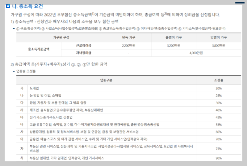 - 맞벌이 : 신청인과 배우자 각각의 급여액이 3백만 원 이상인 가구